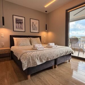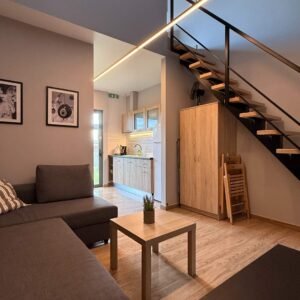 Funkcjonalny, dwupoziomowy apartament dla maksymalnie 4 osób. Na piętrze znajduje się sypialnia, a na dole salon z dwoma miejscami do spania na kanapie oraz aneks kuchenny i łazienka.